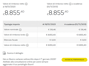 Quindi ricapitolando per il calcolo del valore di rimborso netto dei buoni fruttiferi postali 30 anni abbiamo bisogno: